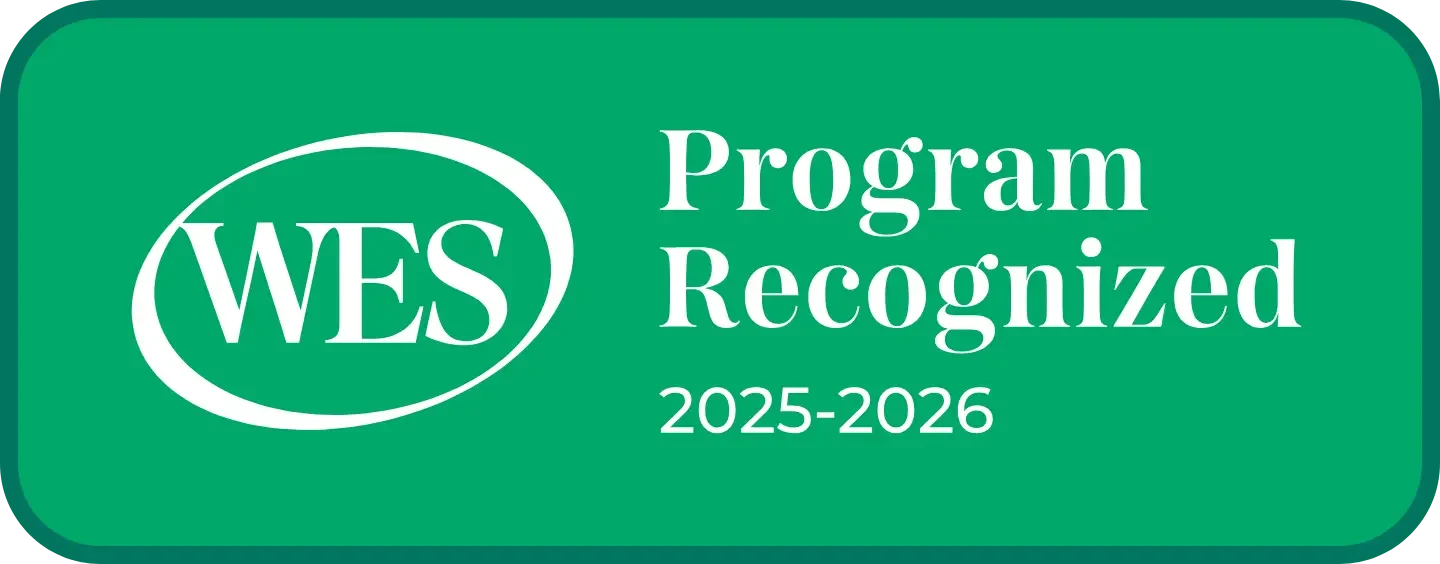 This badge confirms that WES recognizes this program as comparable to programs offered by a regionally accredited institution in the U.S. or a recognized higher education institution in Canada.